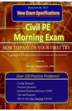 Everything you need to pass the Civil PE Breadth portion of the NCEES Principles and Practice of Engineering Exam. This morning session guide consists of a full 40-question breadth exam with detailed step-by-step solutions and includes important exam day info, a detailed study schedule, and exam-day tips. Designed to help you pass the exam first try.Topics Covered include Project Planning, Means and Methods, Soil Mechanics, Structural Mechanics, Hydraulics and Hydrology, Geometrics, Materials, and Site Development. Each solution contains page references to the CERM to allow for additional topic review.